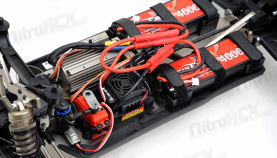 The C8ST is a brushless powered truggy which means instant power unlike its nitro powered counterparts that require revving up an internal combustion engine. The power is ready to rock and roll on tap! Dual 7.4v 4000mah battery discharges its juice into a 100amp waterproof speed controller. Spinning all that power is a 3674 2400kv high torque brushless motor. This setup tortures the pavement and dirt and makes wonderful dirt rooster tails.Â