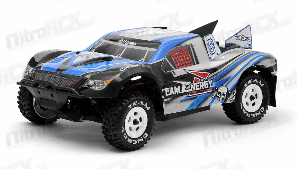 Team Energy has developed an all new 1/10 scale racing chassis. This machine is built burly to handle tough terrain while its suspension and controls handle like a precision guided missile. This is a ready to run short course truck that you can take to jumps for big thrills or take it to a track for top level racing competition. The D10SC electric powered short course truck has everything that a basher or racer would want packed into an amazing radio controlled racing vehicle.