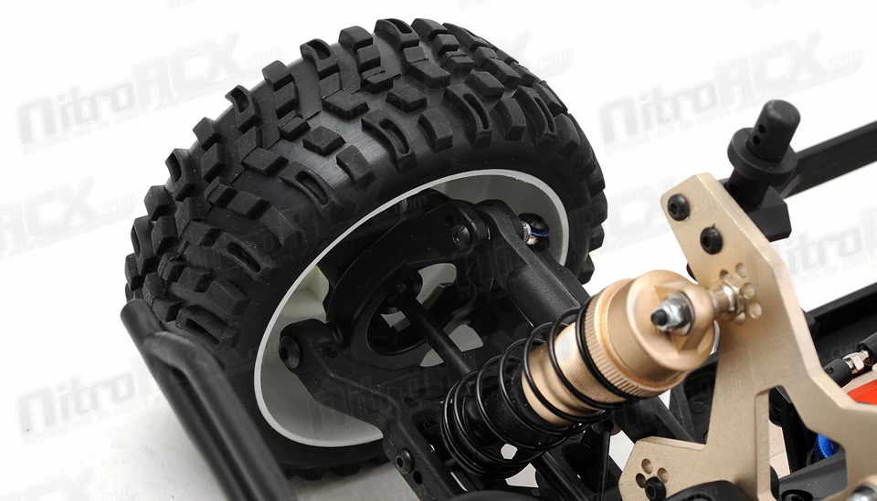 The D10SC also has fresh designed suspension arms featuring centerline shock mounts and an optimized anti-roll bar position. The new suspension arms were designed to work with the aluminum low center of gravity shock towers to improve and optimize the suspension geometry, making the D10SC more plush and forgiving in rougher terrain. 16mm Big Bore aluminum and threaded oil filled shocks also help the short course truck achieve maximum control over any terrain.