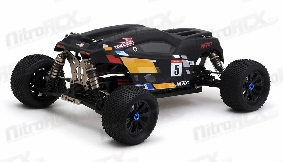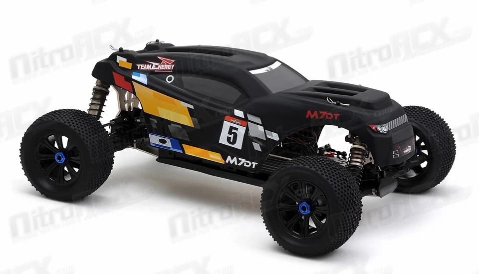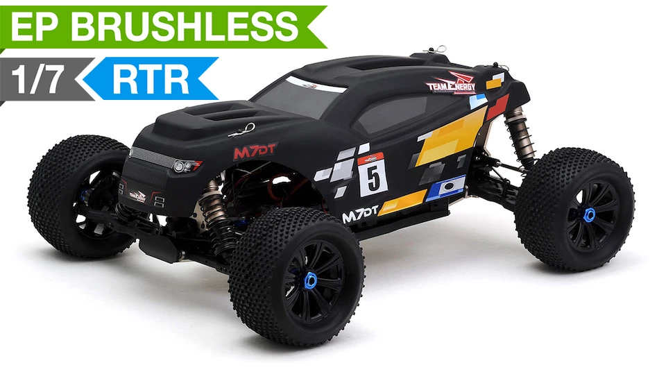 Team Energy has developed an all new 1/7 scale racing chassis. This machine is built solid and sturdy to handle tough terrain while its suspension and controls handle like a precision F1 race car. This is a ready to run buggy that you can take to jumps for big thrills or take it to a track for top level racing competition. The M7DT electric powered desert buggy has everything that a basher or racer would want packed into an amazing radio controlled racing vehicle.Â