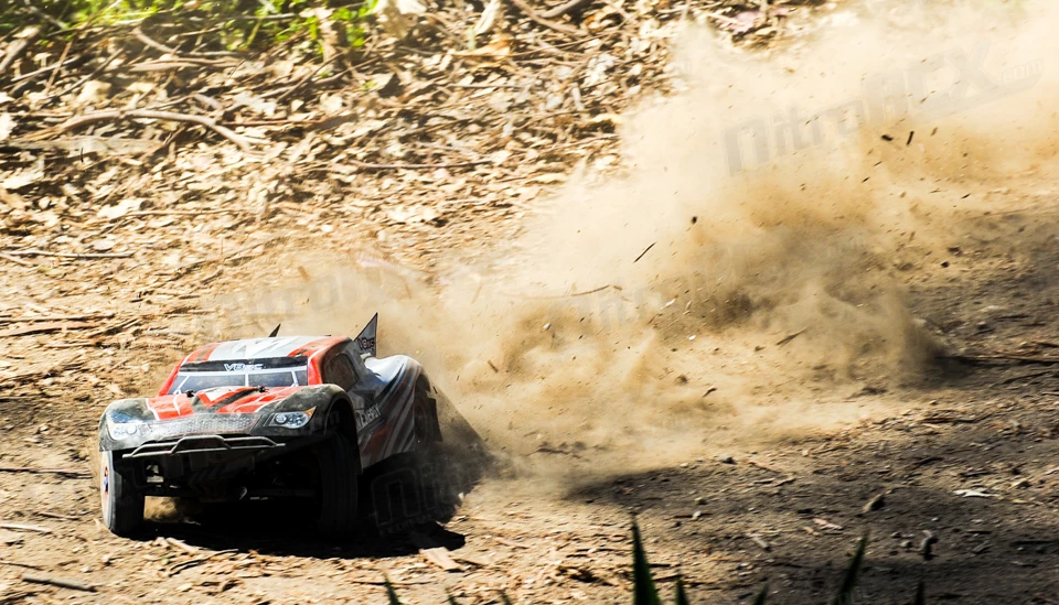 The V8SC is a brushless powered short course truck which means instant power unlike its nitro powered counterparts that require revving up an internal combustion engine. The power is ready to rock and roll on tap! 2x 2S 7.4V 4000mAh 25C Lipo battery discharges its juice into a 100amp waterproof speed controller. Spinning all that power is a 3674 2400kv high torque brushless motor. This setup tortures the pavement and dirt.