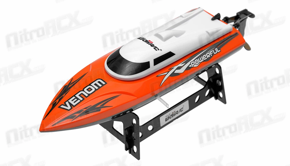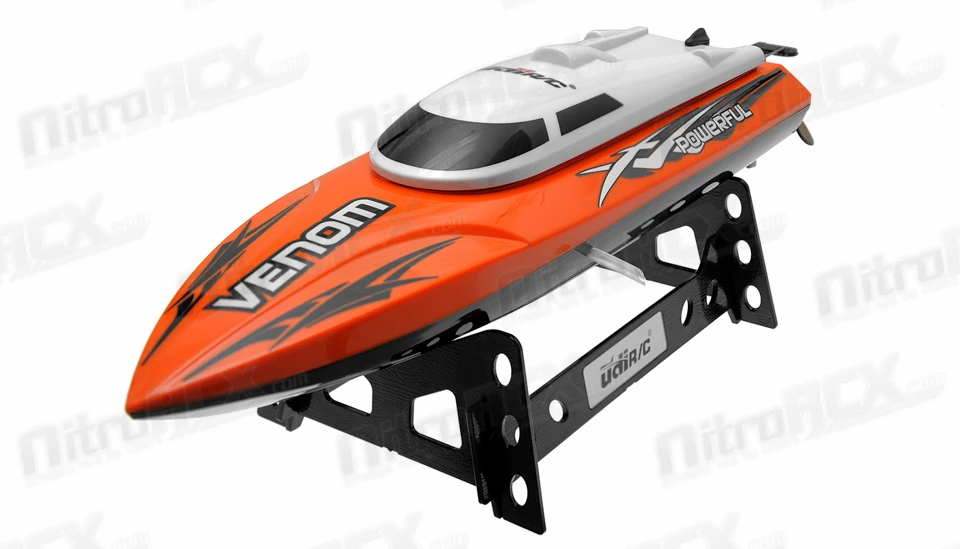 The UDI U001 comes equipped with a water cooling system to prolong the life of the boat. Advanced 2.4GHz automatic code pairing technology allows you to control different boats use different frequencies. When the 2.4G Signal becomes weak, the transmitter will detects and flashes an out-of-range light. The self-righting feature lets you command your boat back into action if it capsizes. Bilateral navigation rudder design automatically corrects yaw. When the battery runs low, the transmitter will sound “di, di, di” this warns you about 1 minute left, so you can sail it back for retrieval.